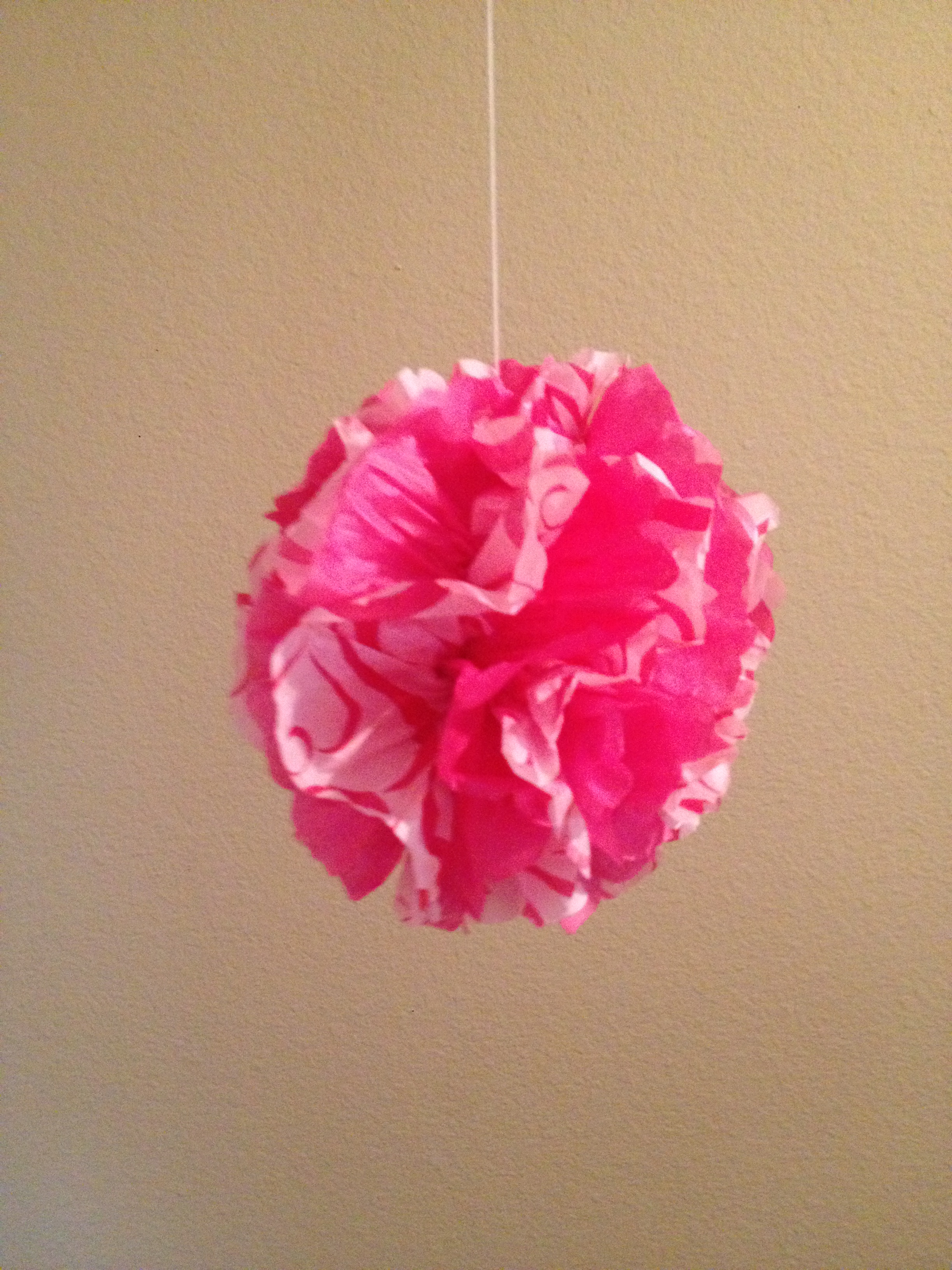 You'll love how easy and inexpensive these fun tissue paper pom poms are. We made these for a "Pink" themed baby shower and, I chose a few different shades of pink tissue paper and accented it with some matching ribbon.