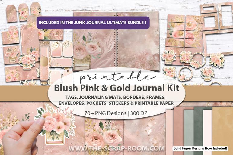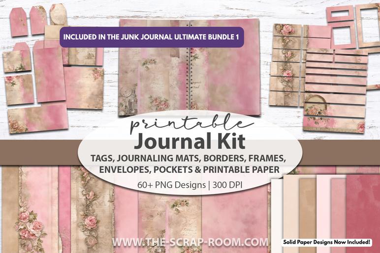 Scrapbookers and junk journalers will fall in love with the Pink & Champagne Printable Junk Journal Kit, featuring digital papers in soft pinks and warm neutrals, plus dozens of timeless embellishments. In addition to layered journal spreads, scrapbooks and handmade cards, these papers would be perfect for romantic gift tags or even DIY wedding invitations.