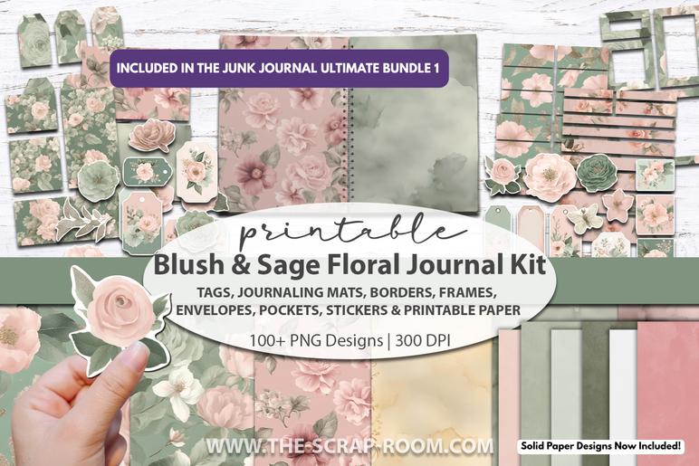 Soft, sweet, and endlessly versatile, this blush pink & green junk journal kit is ideal for feminine projects! Use the delicate pages for Valentine’s Day journals, bridal scrapbooks, or pastel-themed planners. The journaling cards and tags can easily be turned into handmade greeting card embellishments, while the patterned papers make a lovely backdrop for photos of special occasions. Crafters who love shabby chic or romantic aesthetics will find themselves reaching for this kit again and again.