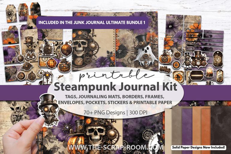 Unleash your spooky creativity with this Halloween Steampunk printable junk journal kit. Gears, clocks, and vintage-inspired Halloween illustrations make it perfect for scrapbookers and mixed media crafters. Create eerie journal spreads, party invitations, or unique gift tags that are full of creepy charm. Crafters who love a mix of spooky and industrial flair will especially enjoy this kit.