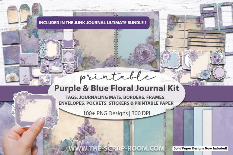 For lovers of romantic color palettes, this purple and light blue printable junk journal kit adds an elegant touch. It’s perfect for art journals, mood journals, or scrapbook spreads, and works well layered with other floral embellishments or in mixed media collages. The pastel tones also make a beautiful backdrop for travel journals or creative writing notebooks. Crafters who enjoy purples and blues will especially love this kit.