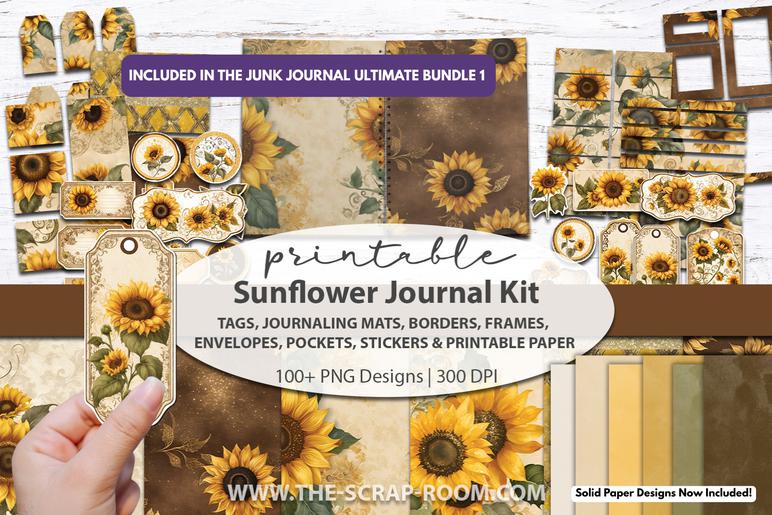 Bright, bold, and full of cheer, this sunflower printable junk journal kit adds sunshine to every project. Golden blooms and rustic accents are perfect for summer memory journals, farmhouse-style recipe books, or handmade gifts for garden lovers. The sunflower journaling cards are great for highlighting outdoor adventure photos, and the ephemera layers beautifully on cards or journal pages. Crafters who love pops of vibrant color will especially enjoy using this kit in their junk journals.