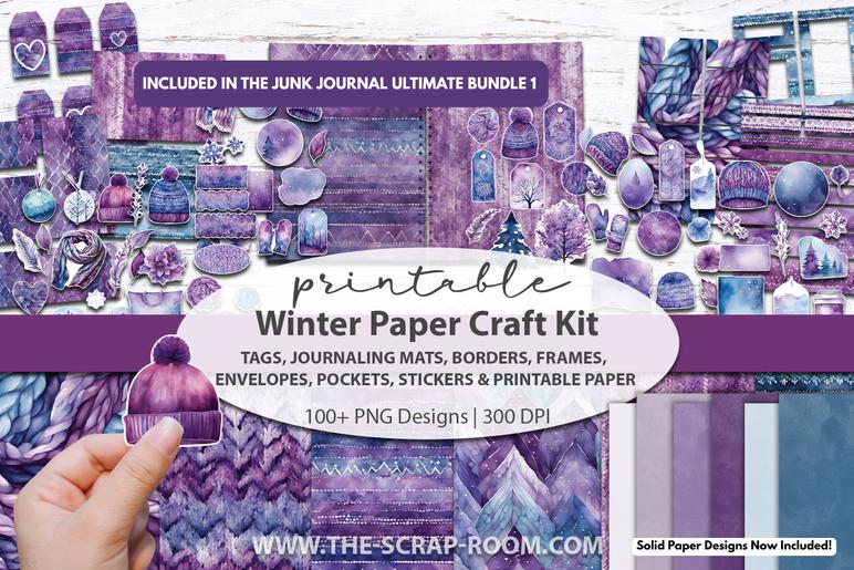 This winter printable junk journal kit is perfect for chilly days. Frosty purples, snowy accents, and cozy seasonal designs make it great for holiday memory keeping or any winter-themed paper craft. The decorative pages work beautifully as backgrounds or can be cut into embellishments. Coordinating tags and ephemera can be layered in scrapbooks or used on Christmas cards. These pages are also ideal for seasonal planners, especially January layouts filled with cozy winter vibes.