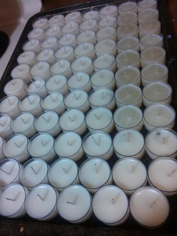 When it comes to wax, I buy Natural Soy Wax in 10 pound bags on Amazon.com, and go through about 20-30 pounds a year. I enjoy burning candles in my home and they always make great gifts, especially when you just need something small and thoughtful. Each pound of wax will yield about 20 tealight candles.